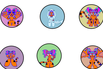 comes with 3 expressions, front n back, color pallet,outfit(if included), description